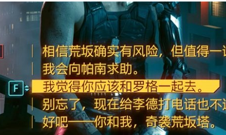 2、这个时候我们和强尼交谈的时候就会有个选项让我们找罗格帮忙。