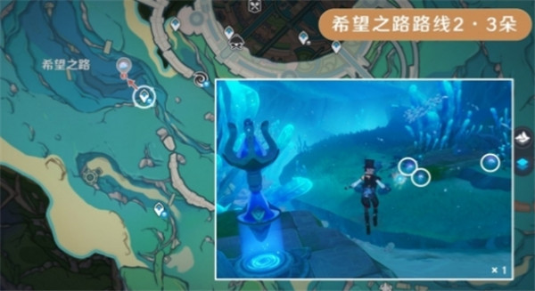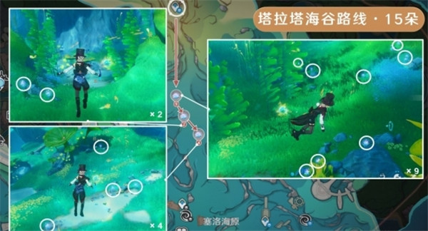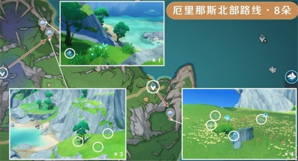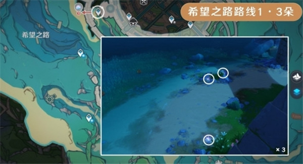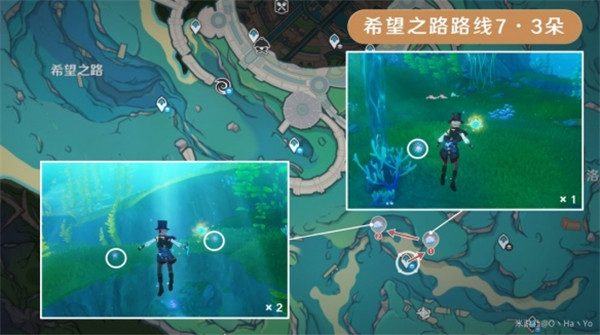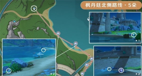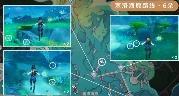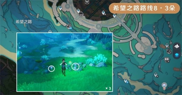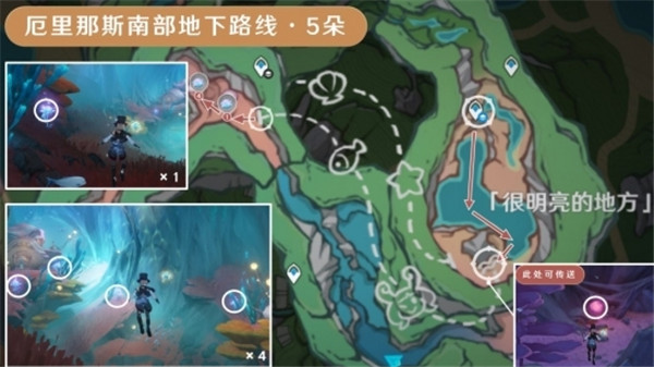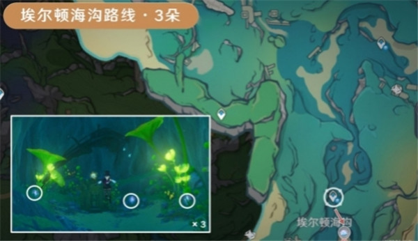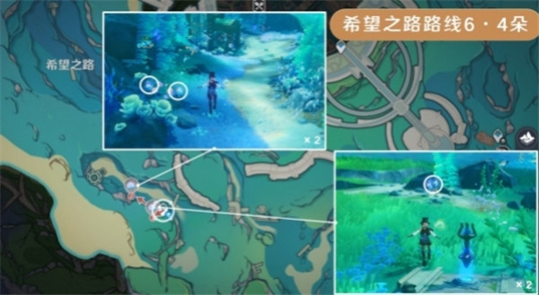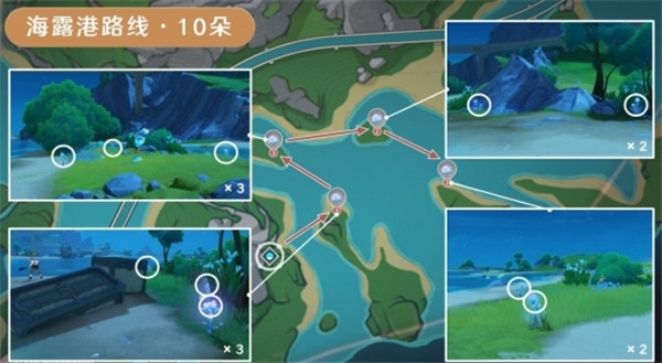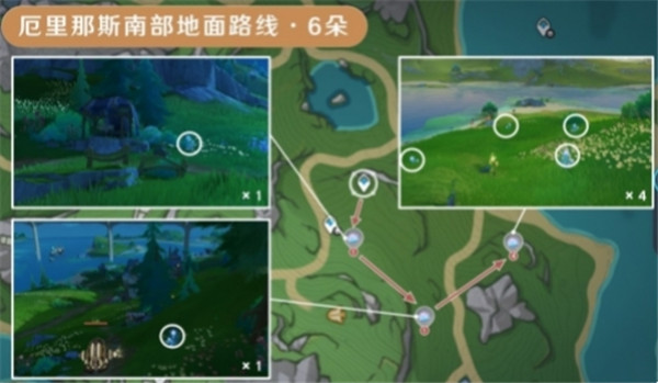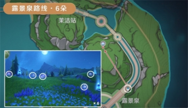 海露花的位置分布还挺多的,旅行者们跟着路线来采集就行~
