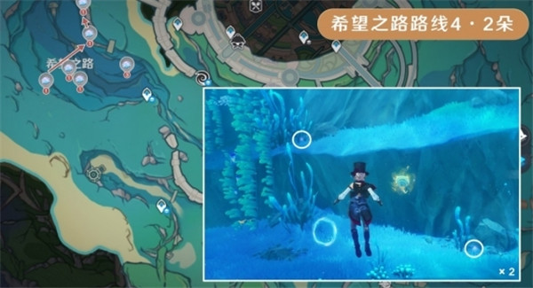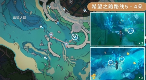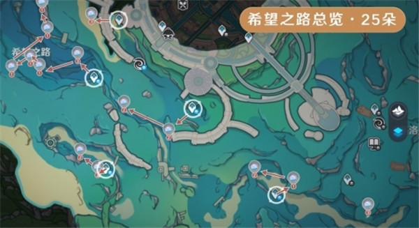 希望之路的路线比较多,大家跟着图例走就好啦!一共是25朵。