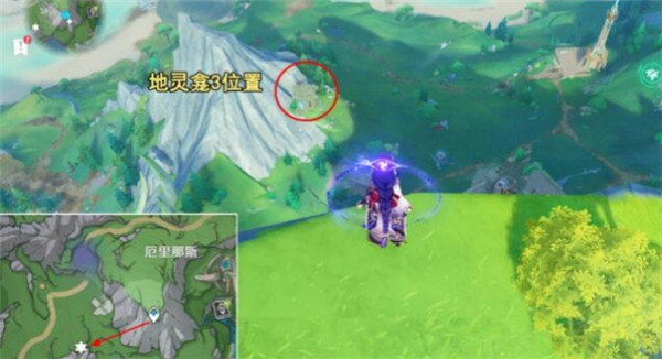 我们从厄里那斯下方的传送锚点出发,朝西南方向飞过去就可以看见地灵龛3号了。