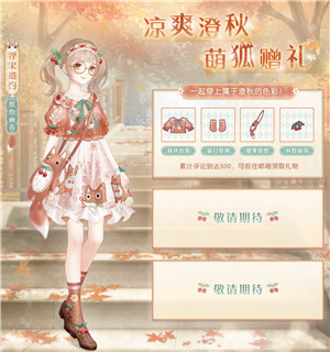 这次的赠礼包含套装【狸果邀约】部件:【上衣·森林旅客】、【袜子·昼日奇境】、【胸饰·樱果信使】、【手饰·林野徜徉】。