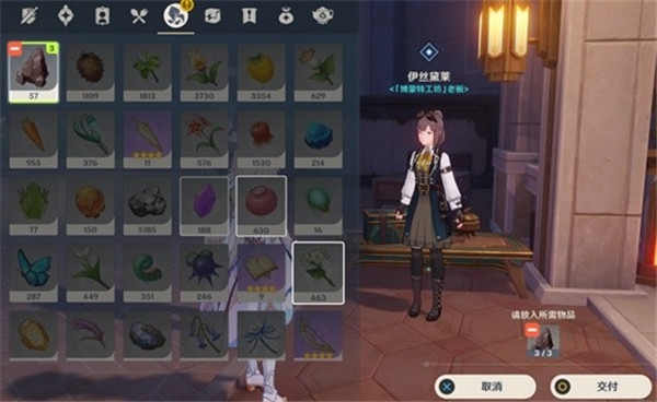 2、这个任务没有太多技术难度喔~在结束和NPC们的任务和对话后,我们把3个铁块交给NPC伊丝黛莱就可以完成任务了。