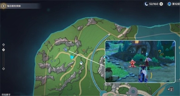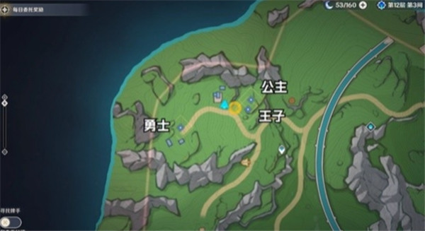 2、这个任务要我们帮助恩肖找到王子、公主和勇士这3只狗狗,狗狗的位置已经标注在图上啦!