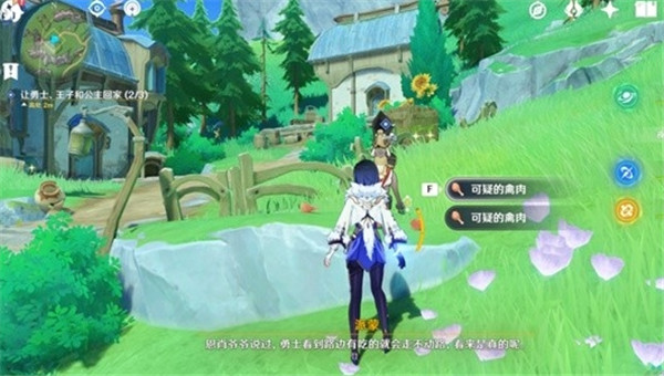 4、勇士这边我们要用禽肉赶它回家,在把3只狗狗都赶回家就可以和恩肖对话完成任务了。