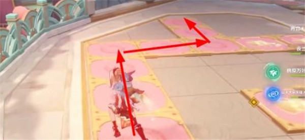 2、我们先从图上的方向出发,跟着箭头走到最右边的踏板。