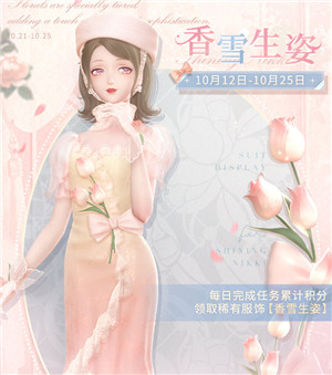 获取方法:搭配师在活动时间内完成每日任务累计任务积分,就能免费获得【香雪生姿】套装了。