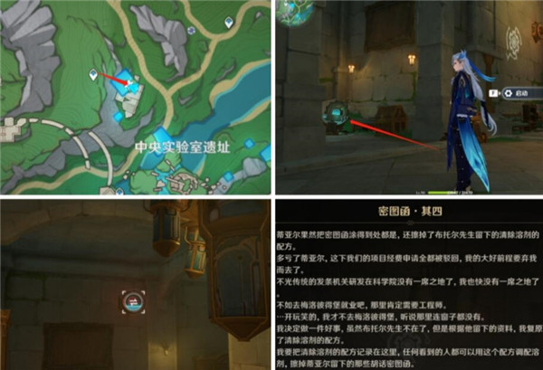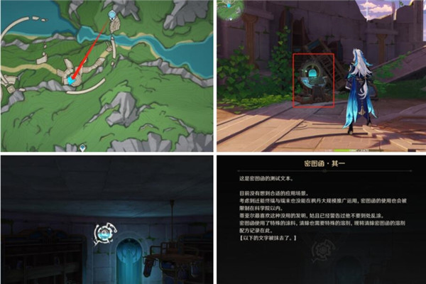 从中央实验室遗址上方的锚点出发,进入地下一层,启动房间的机器和对面的摄像头交换就可以查看密图函了。