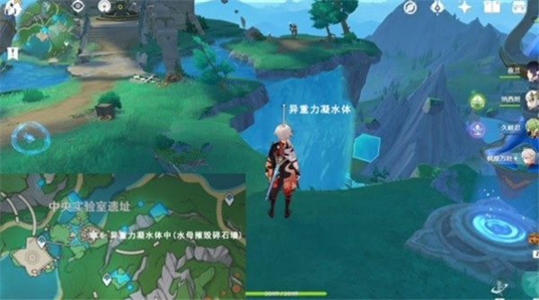 先传送到中央实验室遗址的这个锚点,直接向地图的东方飞,进入【异重力凝水体】。
