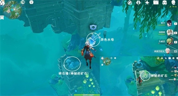 向下获得异色水母的能力,打碎石墙就可以获得神秘的矿石了。