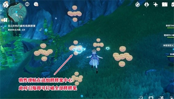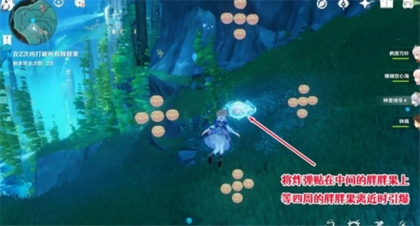 3、【适应训练】的胖胖果如图所示,我们将异色水母炸弹放在最中心的胖胖果上,就可以一次打破所有胖胖果。