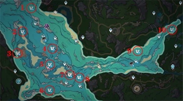 鳗鱼宝箱一共有10个,小编现在就带大家一个一个找点位吧。