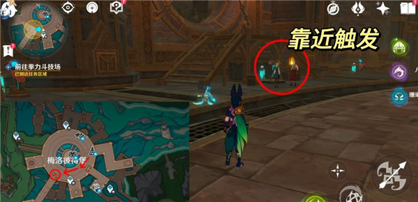 1、首先,我们来到梅洛彼得堡的拳力斗技场,靠近圈出来的NPC就可以触发任务了。