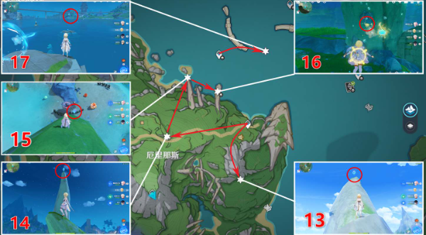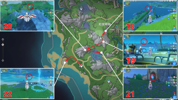 中部一共有5个水神瞳,第19号水神瞳要先通过传送点击败山顶上的魔物,再从漩涡飞到船上启动飞船,然后开启宝箱就可以获得了。