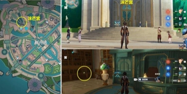 1、我们先传送到枫丹廷的神像,然后去【沫芒宫】,一直走到最里面找到书架,书架上有《雷穆利亚衰亡史·第二卷》。