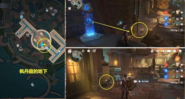 4、我们来到枫丹廷的地下,在NPC薇托维娅的身后就藏着《怪盗与名侦探:虹彩胸针之谜·第一卷》。