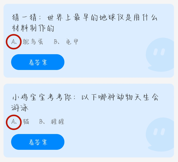 答案1:A 鸵鸟蛋