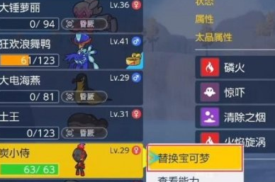 2、选择背包里面的宝可梦然后右侧会出现替换宝可梦的选项。