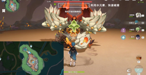 2、我们先用水元素破熔火帝皇的火盾,这样熔火帝皇就陷入瘫痪状态了。