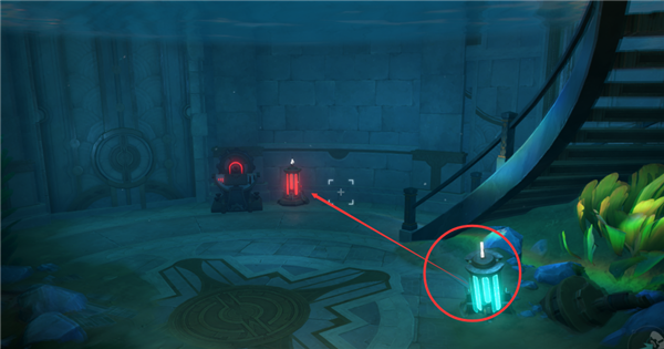 4、追愚人众到处理站下层,这里解谜先把能量转移到柜子顶上的装置,然后拾取能量装置放到旁边的机关去开门。