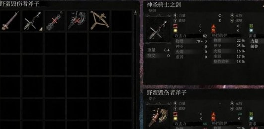 4、野蛮毁伤者斧子的数值上比神圣骑士之剑好一些,具体看我们自己怎么选择吧。