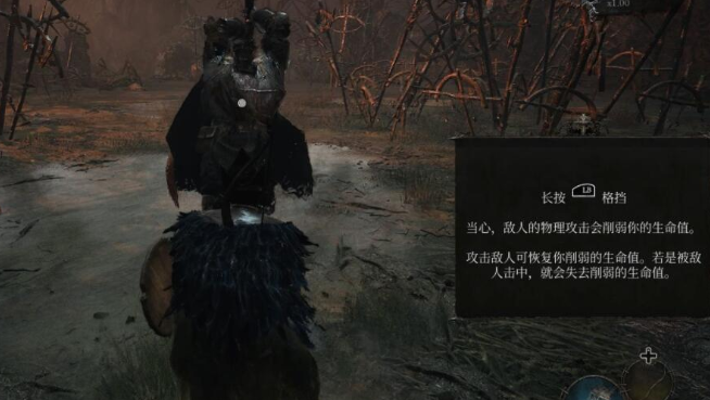 2、我们可以通过他来练习这款游戏的格挡方式,格挡是长按LB按键。