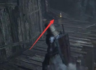 2、到了路的尽头就能找到一个闪光点,靠近即可拾取中型盾牌。