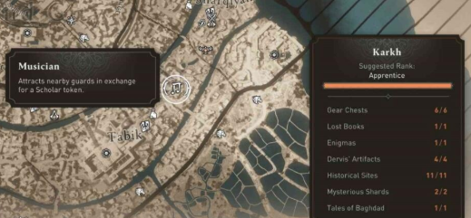 1、这个成就需要我们给乐师们五次代币,大多数玩家不知道他们的具体位置。