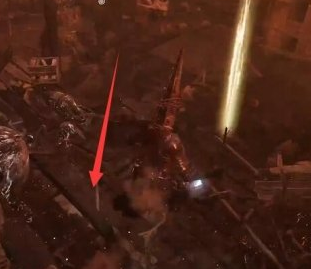 3、我们从中间往下跳就能看见黄色闪光处,靠近拾取就能拿到巨锤碎鳞锤。