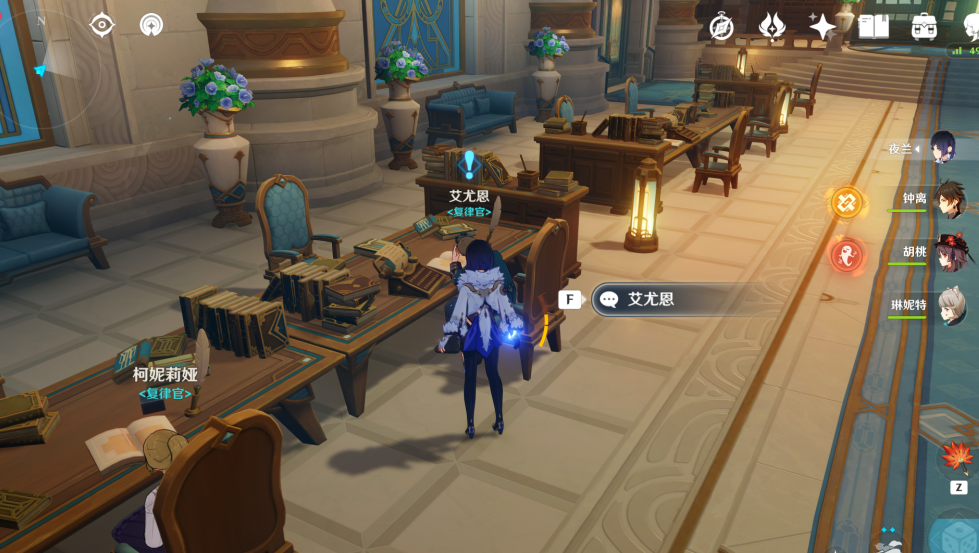 2、进入沫芒宫之后向左拐,找到NPC艾尤恩就能接取任务了。