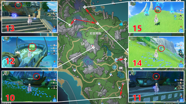 第14个要先用水种子激活侦测晶体;第15个要先进入漩涡拾取水种子,然后回来激活侦测晶体。