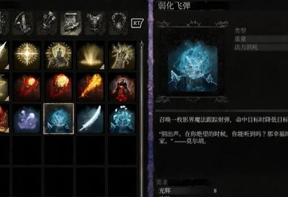 3、攻击这个蓝光,会掉落黄色光点,靠近拾取获得弱化飞弹法术。