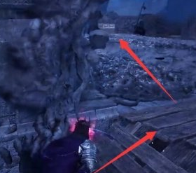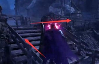 1、首先我们来到图上地点,沿着楼梯往上走,过去木质地板来到对方建筑楼顶。