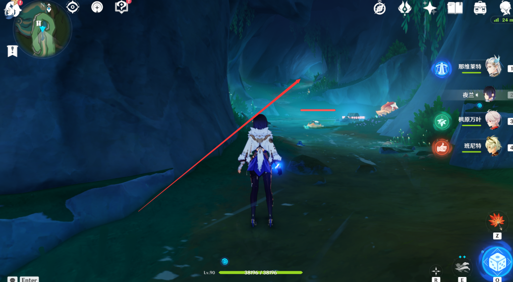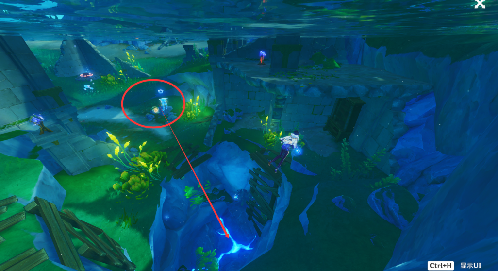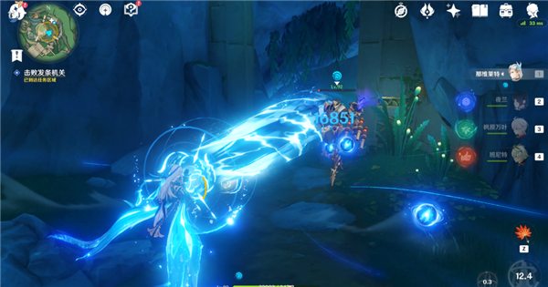 1、首先我们来到枫丹动能工程科学研究院区的水下,先吸收水母的技能把石头炸开。