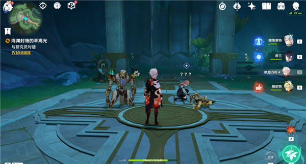 3、走到这扇大门和机关交互,我们进入大门后就会触发海渊封缠的乖离光任务的剧情,这样就成功接取任务了。