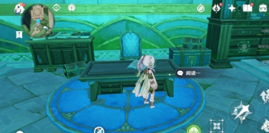 2、根据下图的指示一直向南直走,之后我们会看到一张桌子,点击阅读桌子上的书。