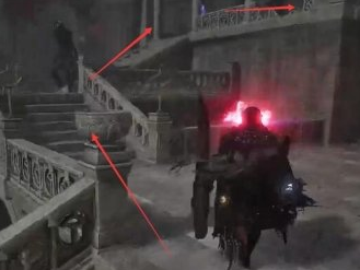 1、首先来到图中位置往左边的楼梯上楼。
