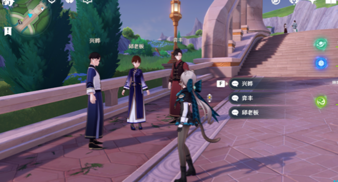1、首先我们来到枫丹露景泉,三人行先寻明师的接取地点就在这里。
