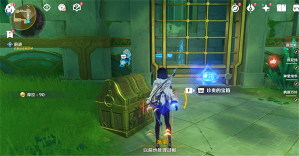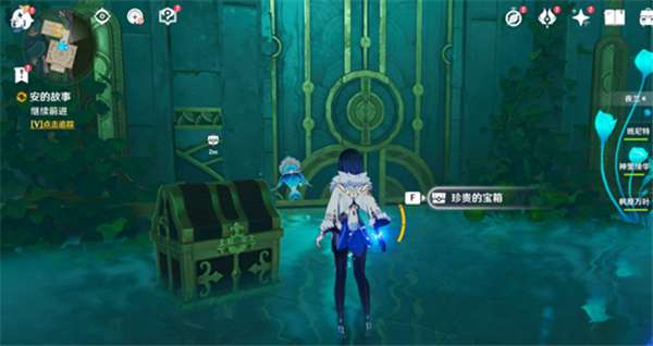 6、继续跟着任务前进,前进的路上开启宝箱拿到羽毛道具。