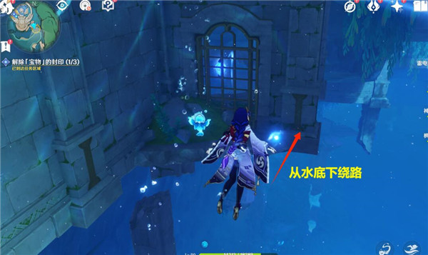 4、如图是第二个机关,我们要从水底下绕路去。