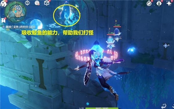6、最后是第三处机关,我们先吸收鲸鱼的能力把怪打掉,再开启第三个机关。
