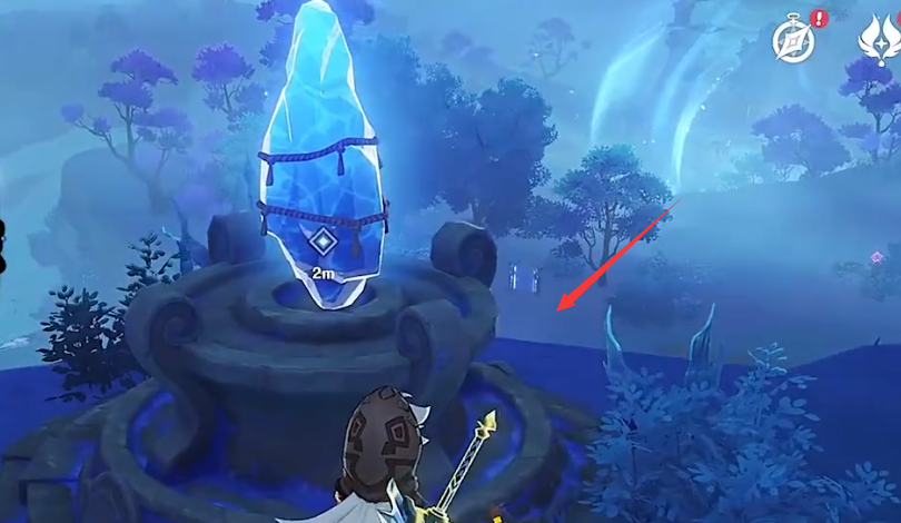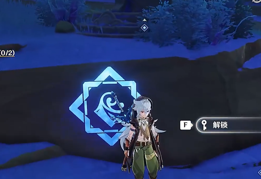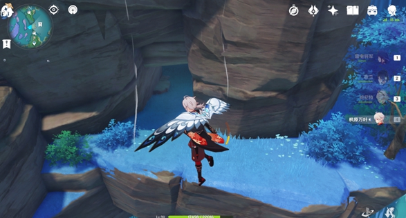 3、首先传送到下方的锚点,然后飞到半山腰找到山洞,把里面的愚人众都清掉拿到第二个键纹。