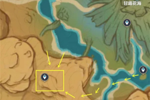 1、我们传送到甘露花海的传送点,按照图中的路线走。