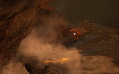 3.他的远程攻击方法是在我们的脚底下使用岩浆冲击,而且每次放完会留在地面一会,每次会有三次攻击,期间保持移动即可。