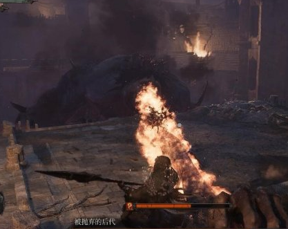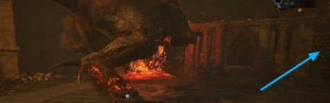 6.他的手掌会在蓄力之后把岩浆覆盖平台,我们先要沿着城墙来到其他平台。
