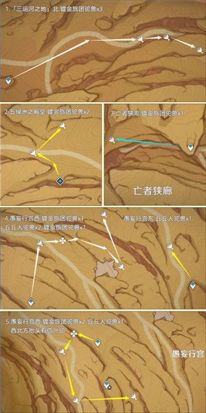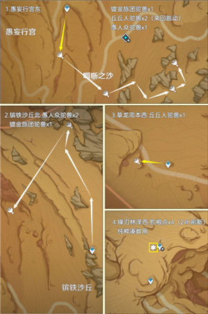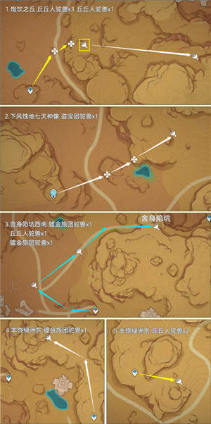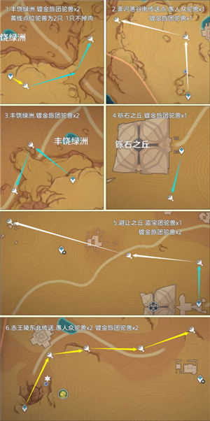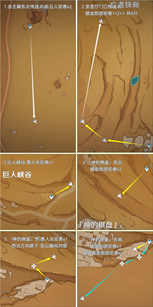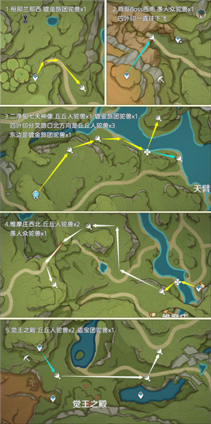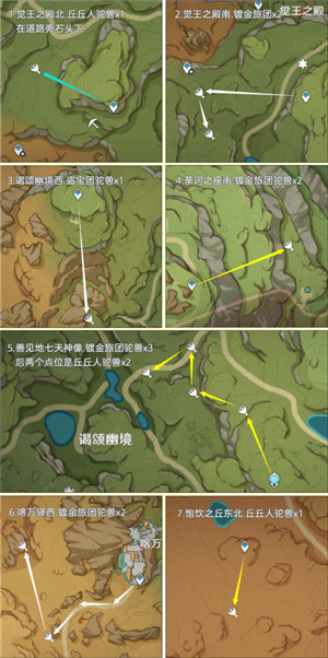 有需要的旅行者可以根据小编的路线来收集,收集途中还有不少丘丘人、镀金旅团,大家可以一起收集噢!