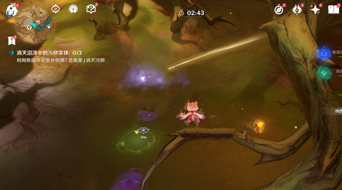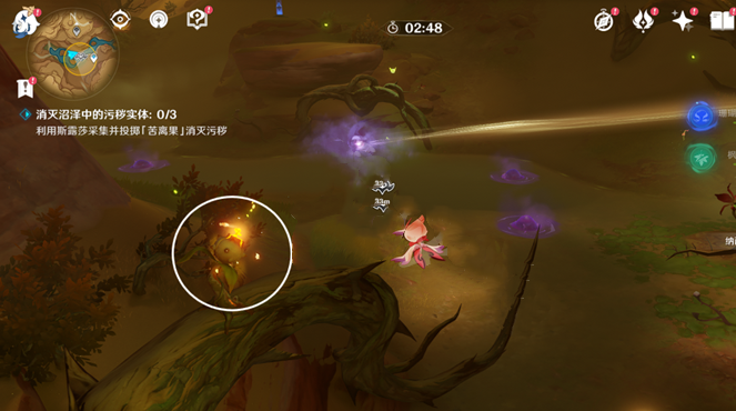 2、这里使用斯露莎的力量,靠近荆棘条短e一下,驱散紫雾。