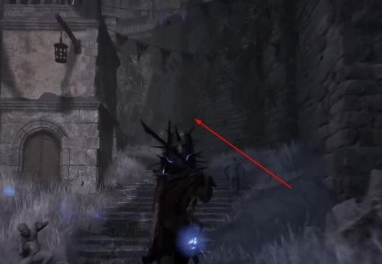 1、首先我们来到图上位置,在旁边有一个楼梯我们沿着箭头处往上走。