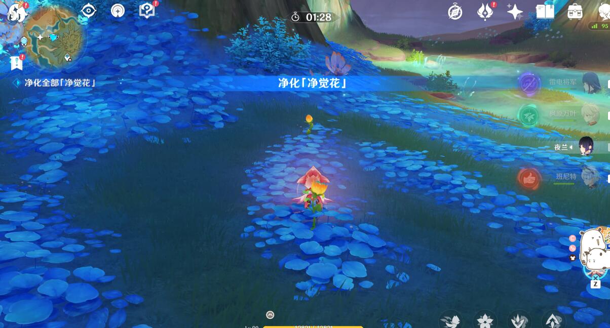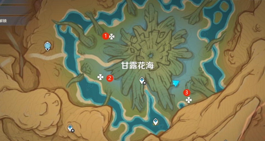 1、丰饶之海成就需要我们在甘露花海完成净化净觉花隐藏任务,一共有3处净觉花。