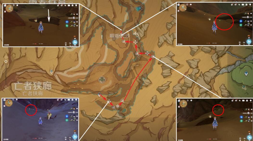 从亡者狭廊的传送锚点开始进入洞窟,路线一直到啁哳之沙,可以采集27个沙脂蛹。