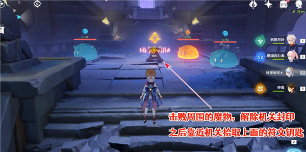 进入紫色光幕后我们清怪解除机关的封印,然后靠近机关把上面的符文拿上。